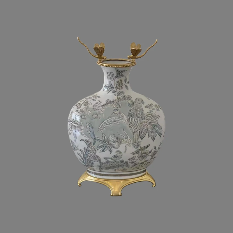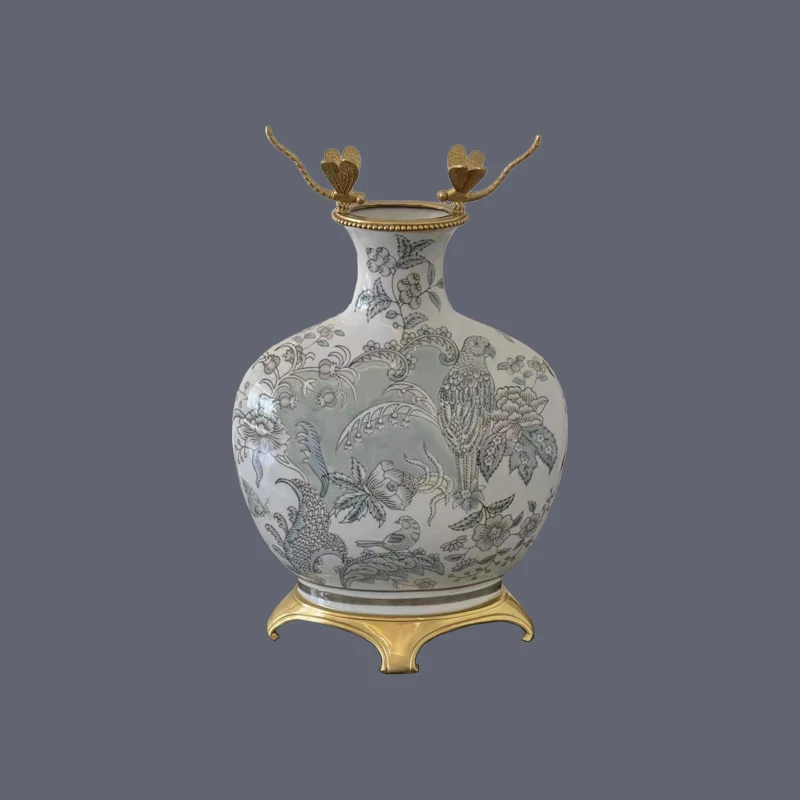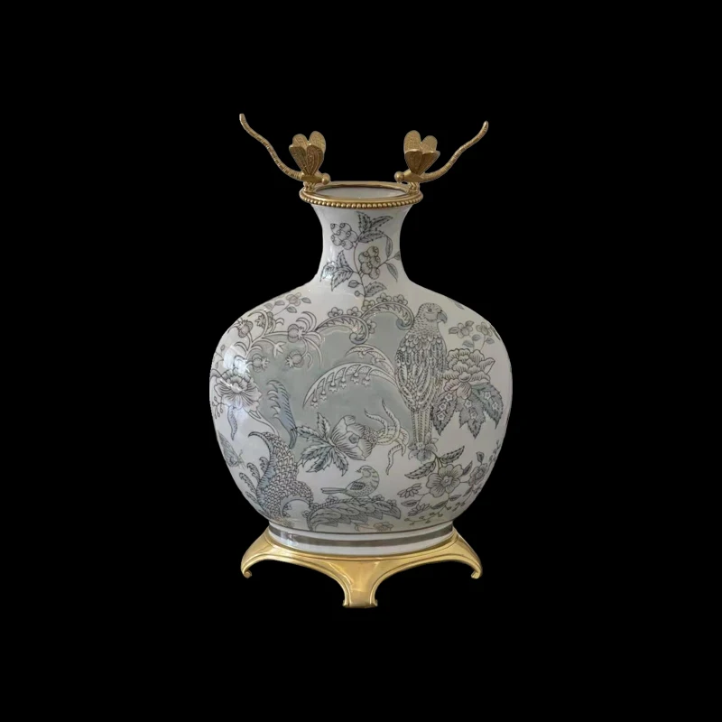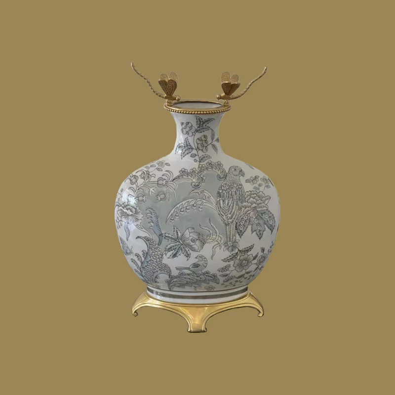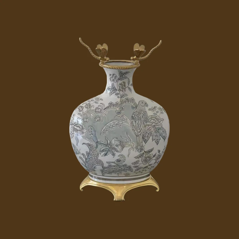China Manufacturer Blue Porcelain vase Ceramic and Brass Home Decor Accessories Chinese Style luxury blue vase
